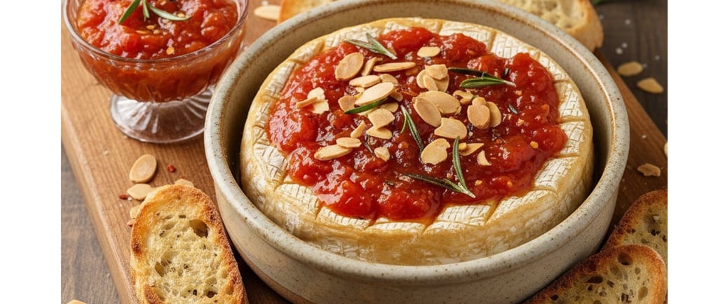 Queso Brie con Maumelada de Jitomate, nueces, almendras y romero